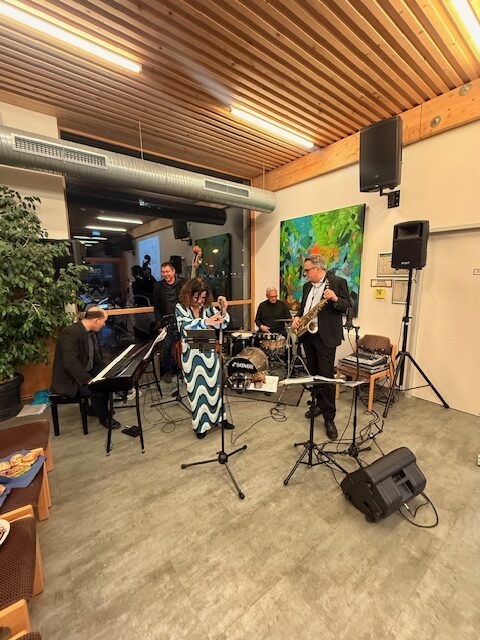 Gestartet haben wir unseren Empfang allerdings mit einer guten Tradition: nämlich mit einer schwungvollen musikalischen Begrüßung. Vielen Dank an das Jazz Quartett „No Milk – No Sugar“ die heute wieder für uns spielen. „No Milk – No Sugar“, das sind: Lea Knudsen, Magnus Schneider, Ulrich Kuhn, Rüdiger Pryzibilla und Gunter Czisch.